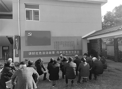 本报讯 近日,建德市寿昌镇政府党员干部会同司法所工作人员走进南浦村,组织老党员围坐在党旗下,讲述红色故事、宣传法律知识,还发放了关于宪法、民法典、反邪、禁毒等内容的平安宣传册,深受欢迎。
