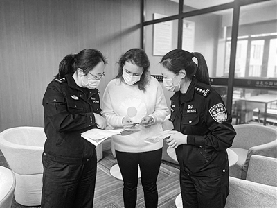 近日,诸暨市公安局出入境管理大队民警与陶朱派出所民警,在移民事务服务站,为外籍师生解读最新疫情防控政策。
