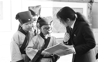 近日,王羲之故里嵊州市金庭镇开展了普法活动。来自镇禁毒办、司法所和嵊州市法院黄泽法庭的普法志愿者,向身着孔服、头戴孔帽的小学生发放宣传手册、讲解法律知识。