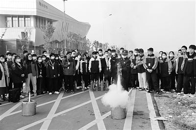 近日,湖州市南浔区消防救援大队组织队员走进南浔高级中学开展消防演练,通过模拟火灾逃生演练等方式,提高师生们的消防安全意识。