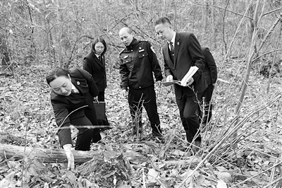 今年以来,江山市法院积极构建环境资源审判联动机制,增强环境资源保护合力,快速从严打击环境资源违法犯罪行为。图为近日,法院联合检察、公安等部门一同勘查一起滥伐林木案的现场。