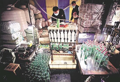 行动联络员、江汉油田公安局江汉治安派出所所长郭磬介绍,这些原酒成本极低,通过勾兑后,冒充品牌白酒出售。“以灌装的某品牌白酒为例,一瓶假酒的成本可能只要2-3元钱,卖给下面的经销商5元,而消费者在市面上买要花费15元。制假窝点每天走货数量较大,赚钱可谓暴利!”郭磬说。