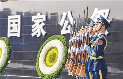 当日是第八个南京大屠杀死难者国家公祭日,南京大屠杀死难者国家公祭仪式在侵华日军南京大屠杀遇难同胞纪念馆举行。