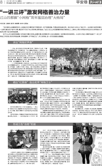 “小‘网’大治。网格员是基层治理中不可或缺的重要力量,只有深挖网格工作潜力,才能进一步提升基层社会治理能力。”四都镇党委书记黄日忠表示,该镇将继续把“一讲三评”机制与数字化改革有机结合,更精准、有效、快速地掌控民情民意,做到“‘关键小事’格中办,‘疑难杂症’不出网”。