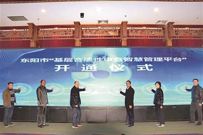 此外,东阳市打造了“全流程闭合式”合法性审查通用流程,明确各环节责任人及责任范围,设置了标准化通用模板。“我们还采用‘PC端+手机掌上终端’相结合的方式,通过便捷化的终端实现远程审查。同时还增设法律顾问业务考核、利用VMR技术设立虚拟法律顾问室和合法性审查业务云联席会议室等功能。”东阳市司法局相关负责人介绍。