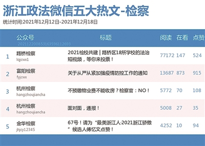 本期检察院榜,“路桥检察”如同“黑马”,获得双料冠军!其《2021检校共建|路桥区18所学校的法治短视频,等你来投票!》一文,以校园法治短视频作品投票获得大量关注。