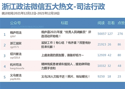 本期司法行政榜,“桐庐司法”获得双料冠军。其《桐庐县2021年度“优秀人民调解员”评选活动开始啦!》一文,让公众认识了一群为社会和谐挥洒汗水、奉献智慧,平凡而不简单的人民调解员。