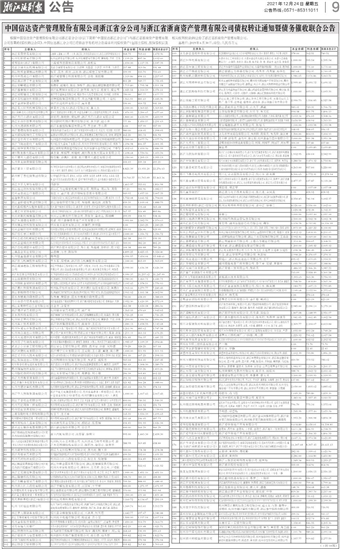 中国信达资产管理股份有限公司浙江省分公司与浙江省浙商资产管理有限公司债权转让通知暨债务催收联合公告