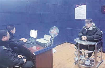 | 在审讯室里,张某向民警供述了自己用刘女士名义办理信用卡并刷爆的经过。警方供图 |
