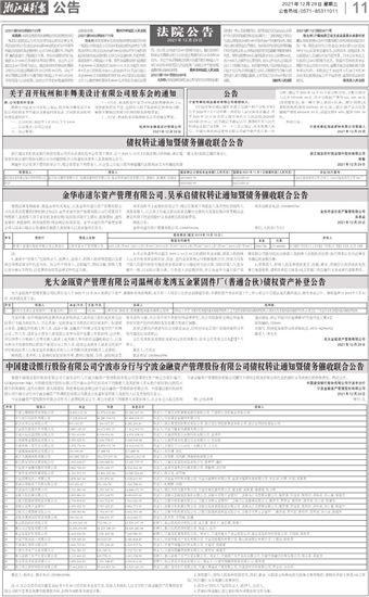 中国建设银行股份有限公司宁波市分行与宁波金融资产管理股份有限公司债权转让通知暨债务催收联合公告