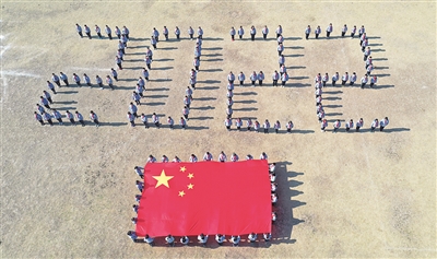 12月30日,德清县清溪小学举行“奇思妙想迎新年”活动,孩子们通过拼字、唱歌、绘画等形式,祝福祖国。图为该校200多名少先队员拼出“2022”字样,喜迎新年。