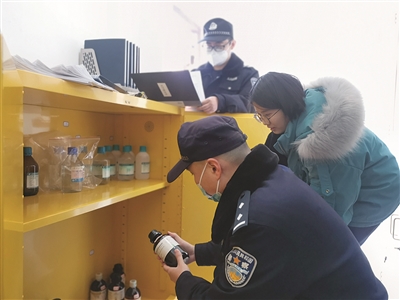 12月30日,天台县公安局城西派出所对辖区各重点单位开展元旦节前危化品安全检查,保障群众平安过节。