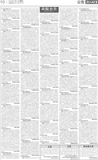 项棋刚:本院受理原告汪由明诉被告项棋刚合同纠纷一案,已审理终结。现依法向你公告送达本院民事判决书[案号:(2021)浙0108民初4146号]。自公告之日起60日内来本院领取民事判决书,逾期则视为送达。如不服本判决,可在公告期满后15日内,向本院浦沿法庭递交上诉状及副本,上诉于浙江省杭州市中级人民法院。逾期未上诉的,本判决即发生法律效力。杭州市滨江区人民法院