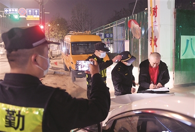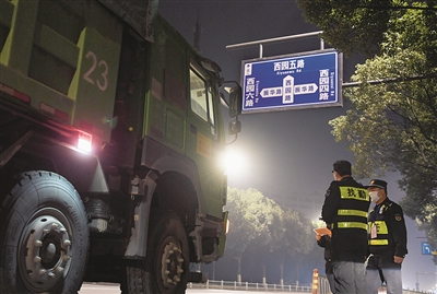 此后,执法队员来到夜间工程车出入较多的西园路和振华路路口,检查过路渣土车、搅拌车等,发现部分车辆存在违规运输的情况。