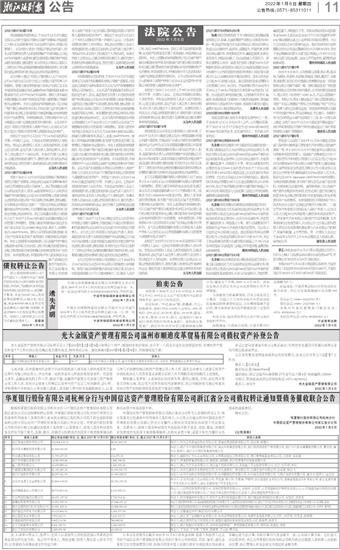 华夏银行股份有限公司杭州分行与中国信达资产管理股份有限公司浙江省分公司债权转让通知暨债务催收联合公告