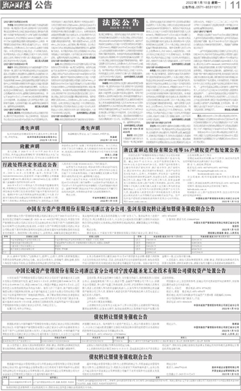 浙江富丽达股份有限公司等16户债权资产包处置公告
