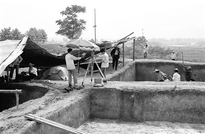 | 1986年11月拍摄的反山遗址考古现场 新华社 吴元柳 摄 |