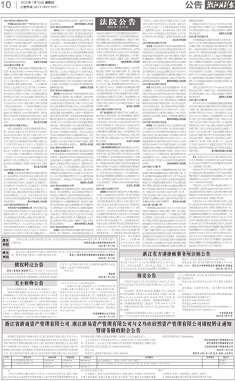 浙江省浙商资产管理有限公司、浙江浙易资产管理有限公司与义乌市欣然资产管理有限公司债权转让通知暨债务催收联合公告