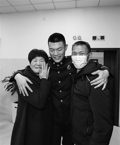 “来,大家站成一排,一起转身喊出心里话。”政治指导员王鑫鑫一边指挥大家站起来,一边偷偷示意后场将新消防员的爸妈领过来。当4名新消防员转身看到自己父母时,先愣了一下,然后就沸腾了。这边摸摸爸妈头上的白发,那边看看儿子手上的老茧,300多个日夜的思念,尽在一家人的拥抱里。