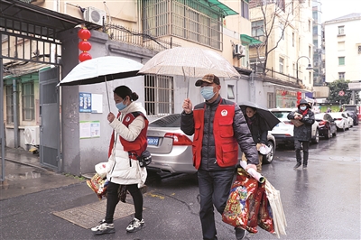 1月28日下午,杭州市“武林大妈”平安志愿者和书法爱好者组成“福小队”,将春联、防疫物资等装进“虎”礼包,送给辖区内留杭外来务工人员、沿街商铺店家和居民。本报记者 马丽红 通讯员 杨映霞