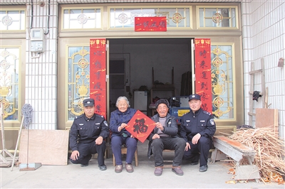 近日,三门县公安局浦坝港派出所开展“百警进千企入万家”活动,民警来到辖区看望孤寡老人,提醒他们注意用火用电安全,平平安安、欢欢喜喜过个幸福年。通讯员 许敏