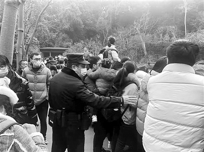 “明明我先来的,你讲不讲道理的?”“大家都在排队的好伐,你喊什么喊?”眼看着两拨人就要大打出手,“大过年的,为了张照片没必要这样,孩子还在旁边呢!”一个身着警服的身影分开人群,将摩拳擦掌的两边人马隔开。一场干戈很快被平息,杨胜荣松了口气,身为杭州南山派出所的民警,他在动物园值守已有20多年。这个春节,他又在动物园里度过。他对记者说,退休前,他要站好这最后一班“春节岗”。