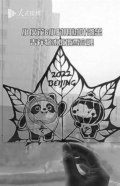 近日,山东聊城一90后小伙耗时6小时,用树叶雕刻出北京冬奥会吉祥物冰墩墩和冬残奥会吉祥物雪容融。他表示想尽自己的一份力,用传统艺术形式支持冬奥会。