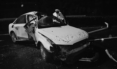 当天凌晨,安吉交警大队接到群众报警称,一转弯路段发生一起轿车单方事故。交警赶到现场后,发现一辆白色轿车受损严重,碎片散落一地,车身右侧中部凹陷变形,道路中央绿化带及一根路灯杆被撞受损。