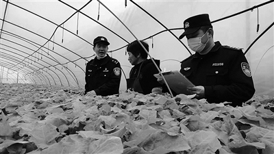 近日,东阳市公安局城东派出所扎实开展“春耕大走访”,民警进大棚察禾苗,与农户交流禾苗培育,面对面做好反诈宣讲,助力春耕生产。