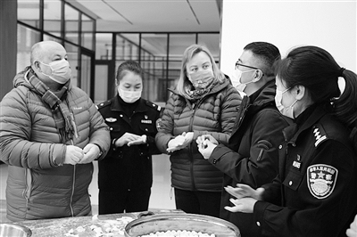 元宵佳节,诸暨市公安局出入境大队、陶朱派出所民警和惠民救援、新城义警的志愿者们,来到未来城联勤警务站,和周边小区居民、外国友人一起搓汤圆过节。