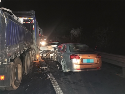 高速上四车连环相撞 第一辆车中的姑娘伤势严重