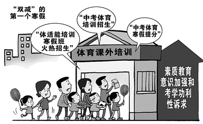 “体适能培训寒假班火热招生”“中考体育培训招生”“中考体育寒假提分”……“双减”政策落地的第一个寒假,各种体育培训广告频频出现,体育培训十分火爆,不少孩子在假期参加了少则一两个多则三四个体培班,一些家长为此付出数千元至上万元的费用。