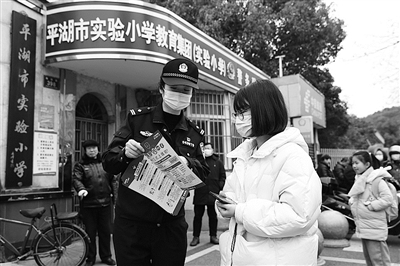 近日,平湖市公安局组织警力前往学校周边开展交通安全、防范电信网络诈骗、排查安全隐患等工作,为学生的平安护航。通讯员 谢远远