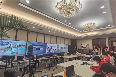 | 2月20日,首都机场运行团队工作人员正在对接、协调北京冬奥机场服务保障相关工作。 记者 黄秋霞 摄 |