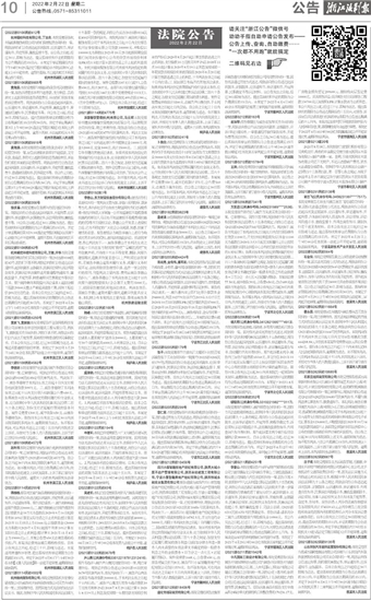 (2022)浙0108民初42号 杭州嵘优环境科技有限公司、王健、许华:本院受理原告姚玲琳诉你们买卖合同纠纷一案(2022)浙0108民初42号,因你们下落不明,现依法向你们公告送达应诉通知书、起诉状副本、证据副本、民事诉讼须知、诉讼风险告知书、民事诉讼举证(案件适用普通程序)通知书、廉政监督卡、开庭传票、转普通程序民事裁定书等诉讼文书。原告姚玲琳向本院提出诉讼请求:1.退回全额工程款29500元整;2.严重延误装修工期,按照工程总价20%支付违约金。自本公告发出之日起经过30日,即视为送达。提出答辩状和举证的期限均为公告送达期满后次日起的30日内。本案定于2022年4月26日下午14时15分在本院第十法庭公开开庭审理,逾期本院将依法缺席判决。杭州市滨江区人民法院(2021)浙0108民初4250号 黄跃飞、黄跃振:本院受理原告仟金顶网络科技有限公司诉被告吉林省恒跃建筑工程有限公司、黄跃飞、黄跃振买卖合同纠纷,因你下落不明,现依法向你们公告送达开庭传票、简易程序转普通程序民事裁定书。自本公告发出之日起,经过30日即视为送达,本案适用普通程序独任审理。本院定于2022年3月29日14时30分在本院第四法庭公开开庭审理,逾期将依法缺席判决。杭州市滨江区人民法院(2021)浙0108民初4562号 李德财:本院受理原告杜跃强诉被告李德财买卖合同纠纷一案,已审理终结。现依法向你公告送达本院(2021)浙0108民初4562号民事判决书。判决如下:一、被告李德财于本判决生效之日起十日内支付原告杜跃强货款59971元。二、被告李德财于本判决生效之日起十日内支付原告杜跃强公告费650元。如果被告未按本判决指定的期间履行给付金钱义务,应当依照《中华人民共和国民事诉讼法》第二百六十条之规定,加倍支付迟延履行期间的债务利息。案件受理费1300元,减半收取650元,由被告李德财负担。限你自本公告发出之日起30日内到本院领取民事判决书,逾期则视为送达。如不服本判决,可在判决书送达之日起十五日内向本院递交上诉状,并按对方当事人的人数提出副本,上诉于浙江省杭州市中级人民法院。杭州市滨江区人民法院(2021)浙0108民初4572号 赵利书:本院受理原告杨清诉被告赵利书房屋租赁合同纠纷一案,已审理终结,现依法向你公告送达本院民事判决书[案号:(2021)浙0108民初4572号]。自公告之日起30日内来本院领取民事判决书,逾期则视为送达。如不服本判决,可在公告期满后15日内,向本院浦沿法庭递交上诉状及副本,上诉于浙江省杭州市中级人民法院。逾期未上诉的本判决即发生法律效力。杭州市滨江区人民法院