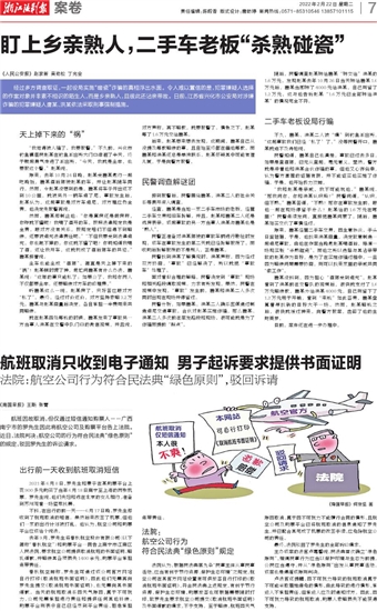 航班取消只收到电子通知 男子起诉要求提供书面证明
