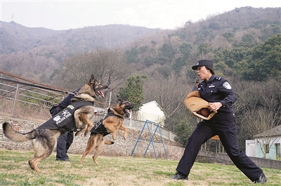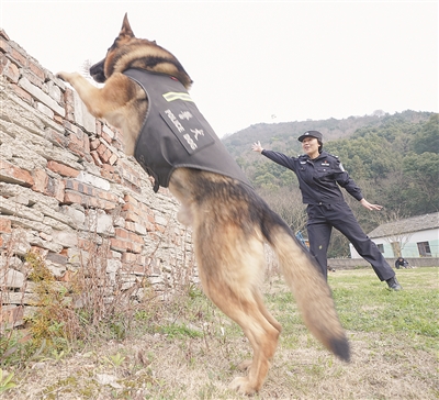 她叫王晶琤,是舟山市公安局普陀区分局巡特警大队副大队长兼警犬训练基地负责人。作为全国首批警犬技术专业女训导员、舟山唯一的警犬“女教头”,她巾帼不让须眉,用心用情投入警犬训导工作,带领警犬战友屡屡立功。图为3月1日,王晶琤带着犬只开展训练。
