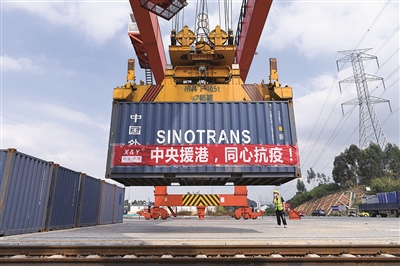 | 3月1日,在深圳平湖南铁路货运站,一批供港物资正在准备中。新华社记者 梁旭 摄 |