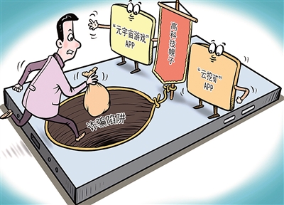 随着比特币、以太坊等虚拟货币兴起,各种门类的“数字货币”风生水起。近期,一些号称可用手机“挖矿”的APP也不断涌现。这些APP打着“云挖矿”的旗号,以“低投入高回报”“日均收益5%”的宣传,诱导投资者通过虚假交易注入资金,并通过用户邀请的模式不断“圈钱”,待聚到大量资金,时机成熟便卷款走人。