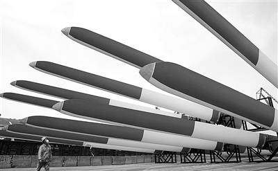 | 风力发电机叶片在江苏连云港港码头等待装船外运(2021年4月16日摄) 新华社 王春 摄 |