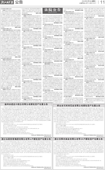 受理征询或异议有效期:10个工作日,如对本次处置有任何疑问或异议请与浙江分公司联系。