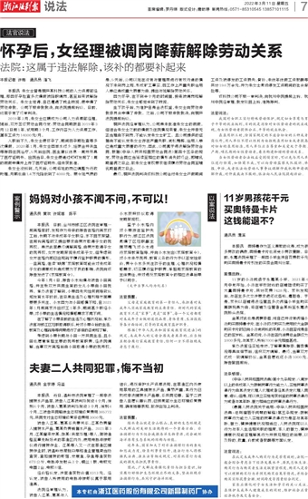 本报讯 朱女士曾是桐庐某科技公司的人力资源部经理,却因怀孕检查多次请假被降职调岗,甚至后来被解除劳动关系。朱女士觉得,自己遭遇了就业歧视,便申请了劳动仲裁。公司不服仲裁裁决,向法院提起诉讼。日前,这案子有了终审判决。