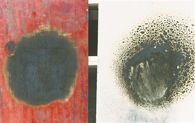 为了验证实验效果,消防员又对大块木板作相同测试,结果一样:没有涂防火涂料的木板很快碳化,涂有防火涂料的木板仅表面焦黑。
