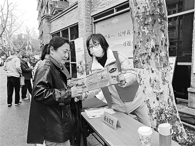 “这宣传折页小巧轻便、简明易懂,插图特别有意思,我拿回去和家里人一起看。”一位路过的阿姨高兴地接过宣传材料。