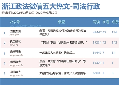 司法行政榜上,“老将”“浙江监狱”发挥稳定,再夺冠军。而热文榜的第一名则由“法治秀洲”斩获。一起恭喜他们吧!