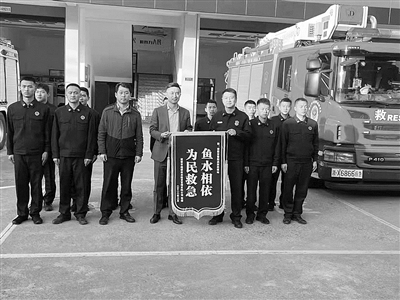 近日,诸暨一家公司将一面锦旗送到诸暨市消防救援大队暨阳站,感谢消防员及时将被困电梯的6名顾客救出。