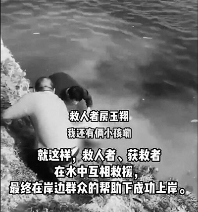 近日,河南周口,一轿车不慎坠河2人被困。危急时刻,一路过小伙跳入河中施救。当他把第二名被困者送到岸边时,却感到体力不支,便对被救者说:“你自己划拉着上岸吧,别管我了,俺家是郜庄的,我家里有两个孩子……”此时,会游泳并缓过劲儿的被救者表示,不能丢下对方。最终,两人在互相救援与岸边群众的帮助下,成功上岸。