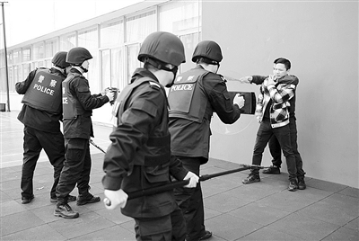 近日,台州市公安局椒江区分局巡特警大队结合“三能”主题教育实践活动和全警实战大练兵活动,开展常态化应急处置突发事件演练,进一步提升民辅警的应对和处置能力。