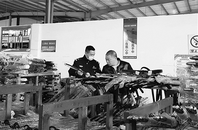 本报讯 近日,龙泉市公安局民警走进辖区郑氏刀剑有限公司,向企业员工了解刀剑登记备案系统使用情况,并对“一刀一码”情况进行检查。