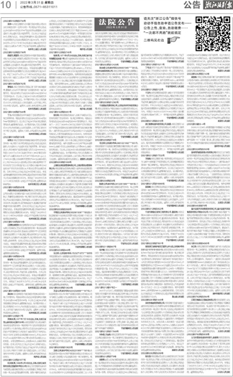 江恩青、陈君清:本院受理原告杭州宝泽汽车销售服务有限公司诉被告江恩青、陈君清追偿权纠纷一案,依法适用普通程序,因无法向你们直接送达,依照《中华人民共和国民事诉讼法》第九十五条之规定,现依法向你们公告送达起诉状副本、应诉通知书、举证通知书、诉讼风险告知书、开庭传票、证据材料等。自本公告发出之日起,经过30日即视为送达。本案适用普通程序审理,提出答辩状和举证期限均为公告送达期满后的15日内。本院定于2022年5月17日上午10时在本院第六法庭公开开庭审理。请准时到庭,逾期将依法缺席判决。杭州市滨江区人民法院